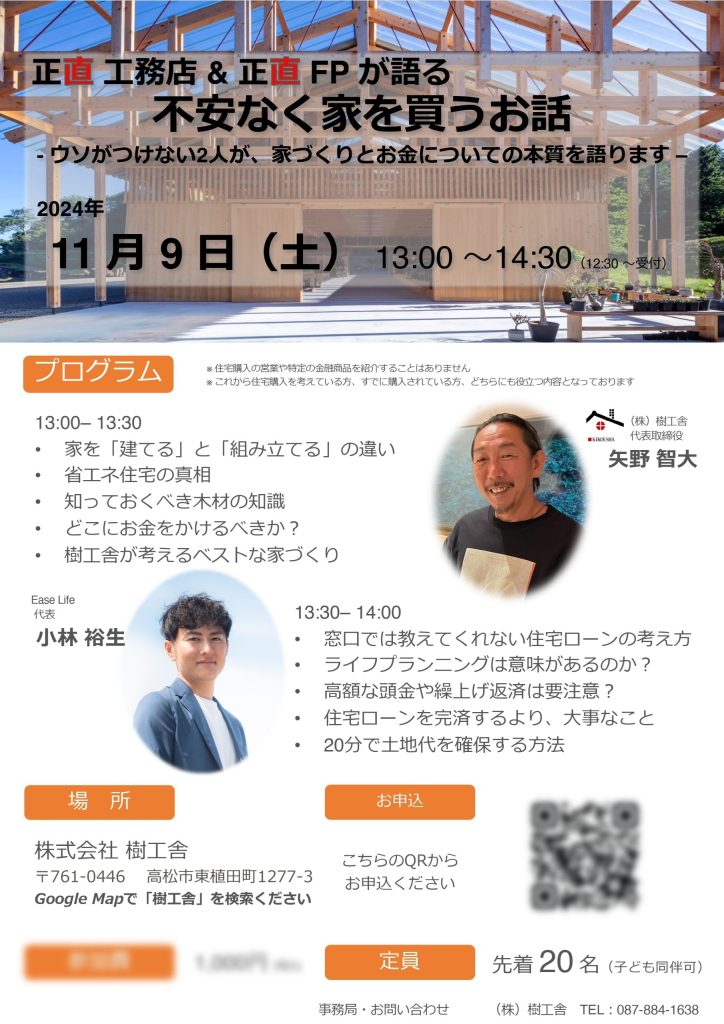 正直工務店&正直FPが語る 不安なく家を買うお話 2026 1/09 Seminar/Lectures 2024年11月16日2026年1月9日 URLをコピーする URLをコピーしました! Seminar/Lectures シェアはこちらから URLをコピーする URLをコピーしました! 金融業界にいて想うこと 小豆島で「豊に」生きるーお金との向き合い方を見つめる島時間ー この記事を書いた人 yu_ki0328 関連記事 キッズマネーセミナー 2025年6月3日 いま知ってわが子をまもる資産のおはなし 2025年5月20日 お金の知識で「泣く人」、「笑う人」 2024年12月17日 小豆島で「豊に」生きるーお金との向き合い方を見つめる島時間ー 2024年12月7日 知識で守る資産講座 2024年8月30日 金融商品の本質を伝えたい 2024年6月30日 30分で100万円節約する 2024年5月30日 マネーセミナーに騙されないセミナー 2023年10月13日 コメント コメントする コメントをキャンセルコメント ※ 名前 ※ メール ※ サイト 次回のコメントで使用するためブラウザーに自分の名前、メールアドレス、サイトを保存する。